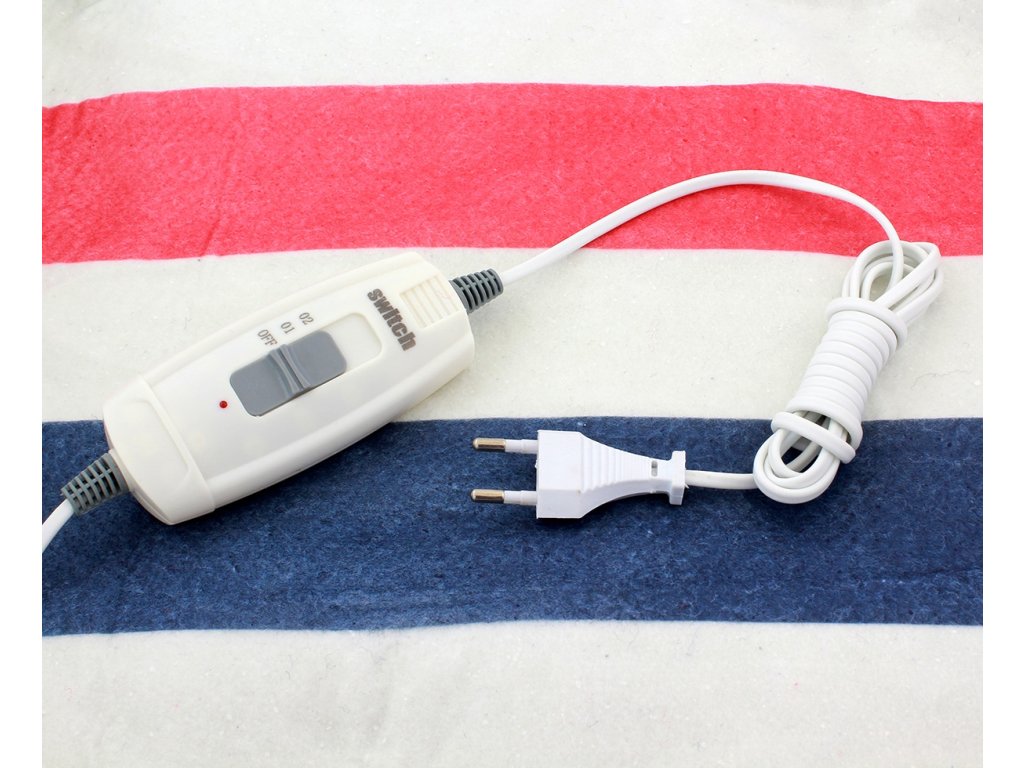 - Hřejivá deka je připojena k napájení pomocí kabelu o délce cca 2 metry. Na kabelu je regulátor teploty. Na regulátoru si můžeme vybrat jednu ze 2 úrovní ohřevu.