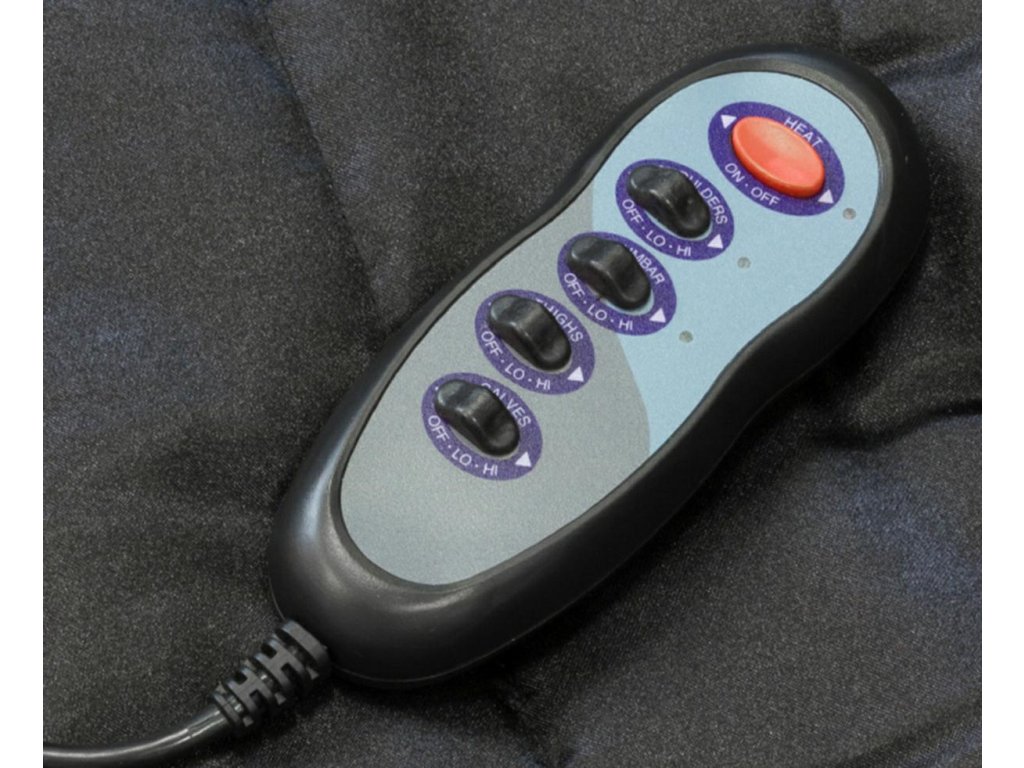 - 9 masážních motorků a 4 masážní zóny, které lze používat jednotlivě nebo všechny současně. Matrace umožňuje masírovat různé části těla: horní část zad, spodní část zad, stehna, hlavu, krk, paže, nohy.