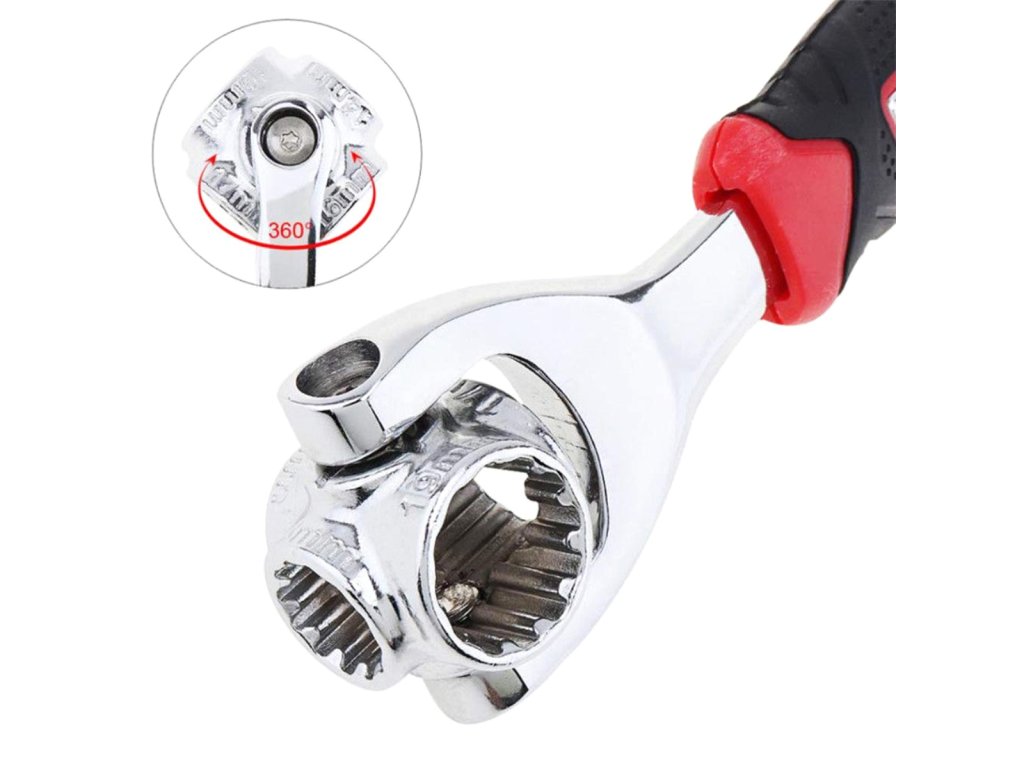 Multifunkční univerzální otočný klíč. Úspěšně nahradí řadu dalších nástrojů! Je ideální pro všechny druhy šroubů a matic díky širokému rozsahu roztečí (od 8 do 19 mm). Vybaven dvěma otočnými hlavami s rozsahem 360 stupňů, každá z nich má 4 otvory. Pohodlná pogumovaná rukojeť zvyšuje úchop a zabraňuje únavě rukou. Nezbytná vychytávka pro každého kutila.