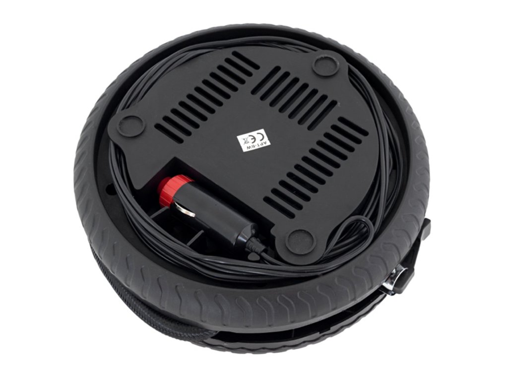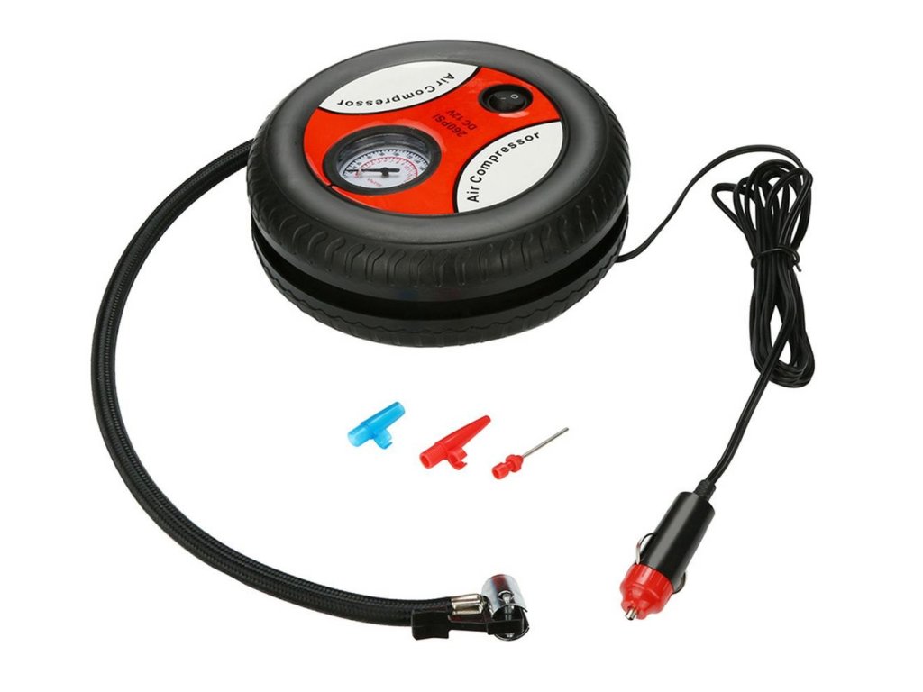 Autokompresor s originálním tvarem... kruhu. Perfektní pro každou garáž a auto a originální vzhled z něj dělá zajímavý nápad na užitečný dárek pro každého chlapa.