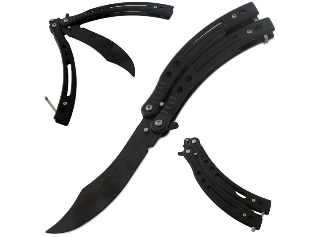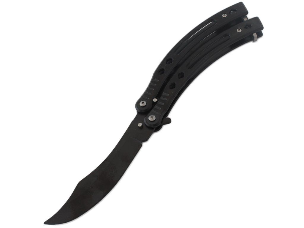 Skládací motýlkový nůž. Vybaveno řádně chráněnou, ostrou čepelí. Ideální pro trénink. Lze pohodlně rozložit jednou rukou. Nůž je vybaven zámkem pro otevírání a zavírání.
