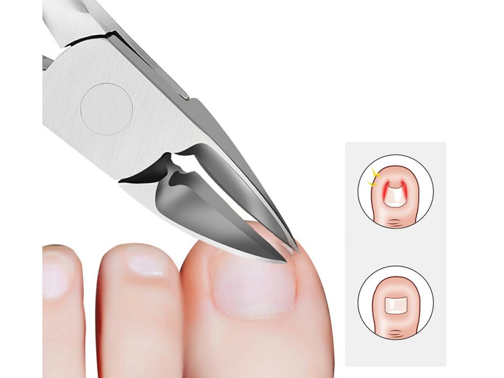 - Speciální zahnutá čepel usnadňuje přesné zastřihování zarostlých nehtů.