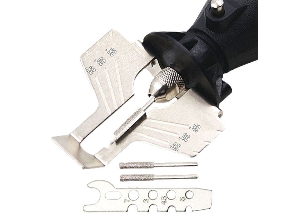 - Obsah balení: Ostřička, 3 brusné válečky (4,5 mm, 5 mm, 6,5 mm), montážní klíč.