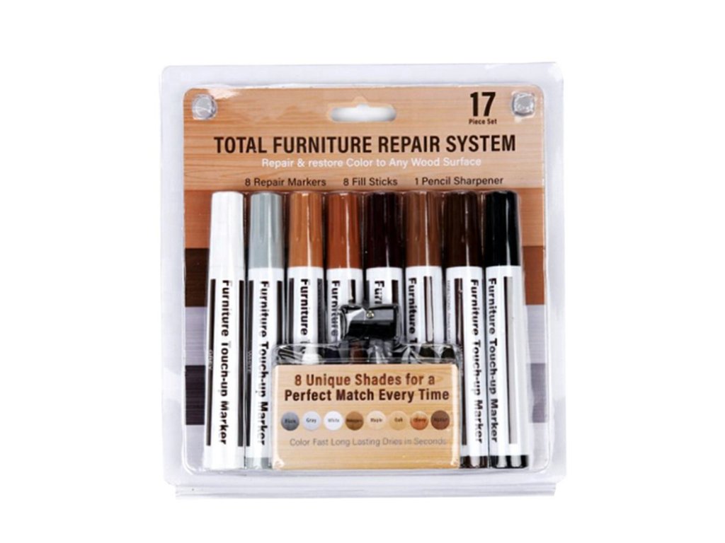 Vynikající sada pro rychlou a nezávislou opravu nábytku, panelů nebo jiných dřevěných povrchů. Sada obsahuje až 8 různých barevných voskových plničů, ořezávátko a 8 různých fixů. Umožňuje snadnou opravu drobných vad a škrábanců. V případě nejmenších škrábanců a často používaných povrchů používáme v závislosti na stupni poškození voskové plničky k záplatování defektu a fixy.