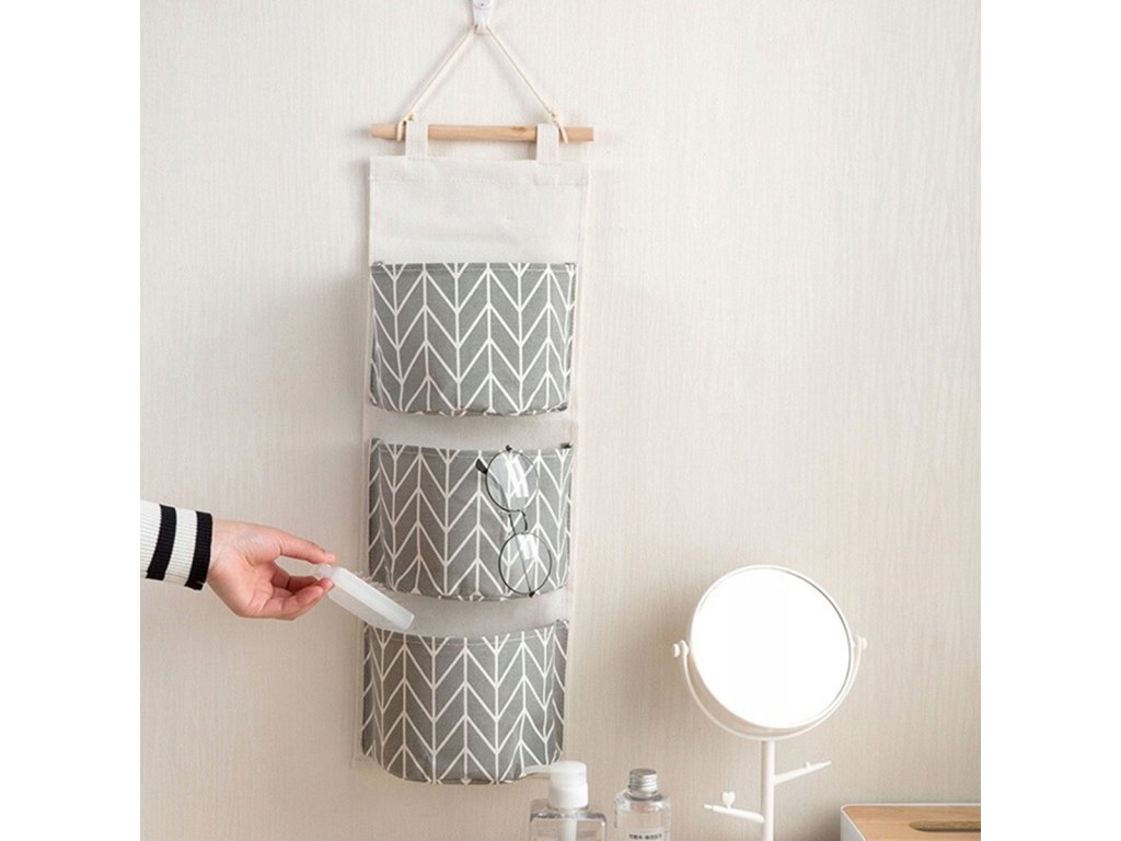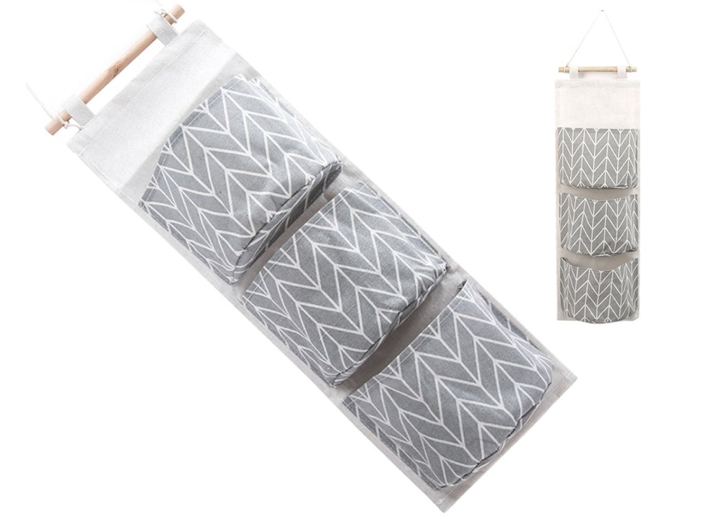 Stabilní závěsný organizér na hračky. Skvěle poslouží i jako závěsná polička v koupelně. Vybaven až 3 prostornými, otevřenými kapsami. Určeno pro montáž na stěnu místnosti. Perfektní způsob, jak ušetřit místo. Vyrobeno z odolného lnu a bavlny na voděodolném plastu, který zaručuje dlouhé a bezproblémové používání. Zcela skládací – když se nepoužívá, zabere málo místa.