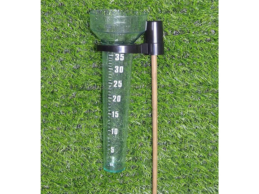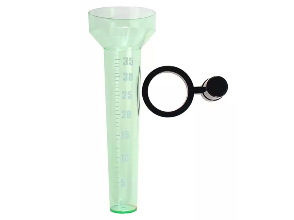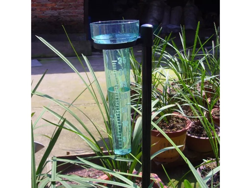 Kompaktní měřič úhrnu srážek. Srážkoměr je jednoduchý a přesný nástroj, který vám umožní měřit úrovně srážek až do maxima 35 litrů na metr čtvereční (35 l/m2). Pohodlný způsob převodu výsledků (každý 1 mm deště na měřidle odpovídá 1 litru deště na m2).