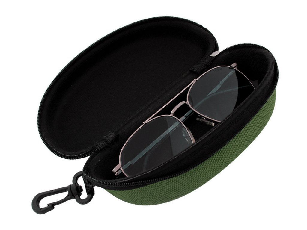 Vysoce kvalitní pouzdro na brýle. Má praktické zapínání na zip a háček pro snadné uchycení pouzdra k čemukoliv. Měkká vnitřní podšívka chrání brýle před poškrábáním a znečištěním. Pevná konstrukce pouzdra zabraňuje náhodnému poškození brýlí při pádu nebo rozdrcení. Univerzální velikost.
