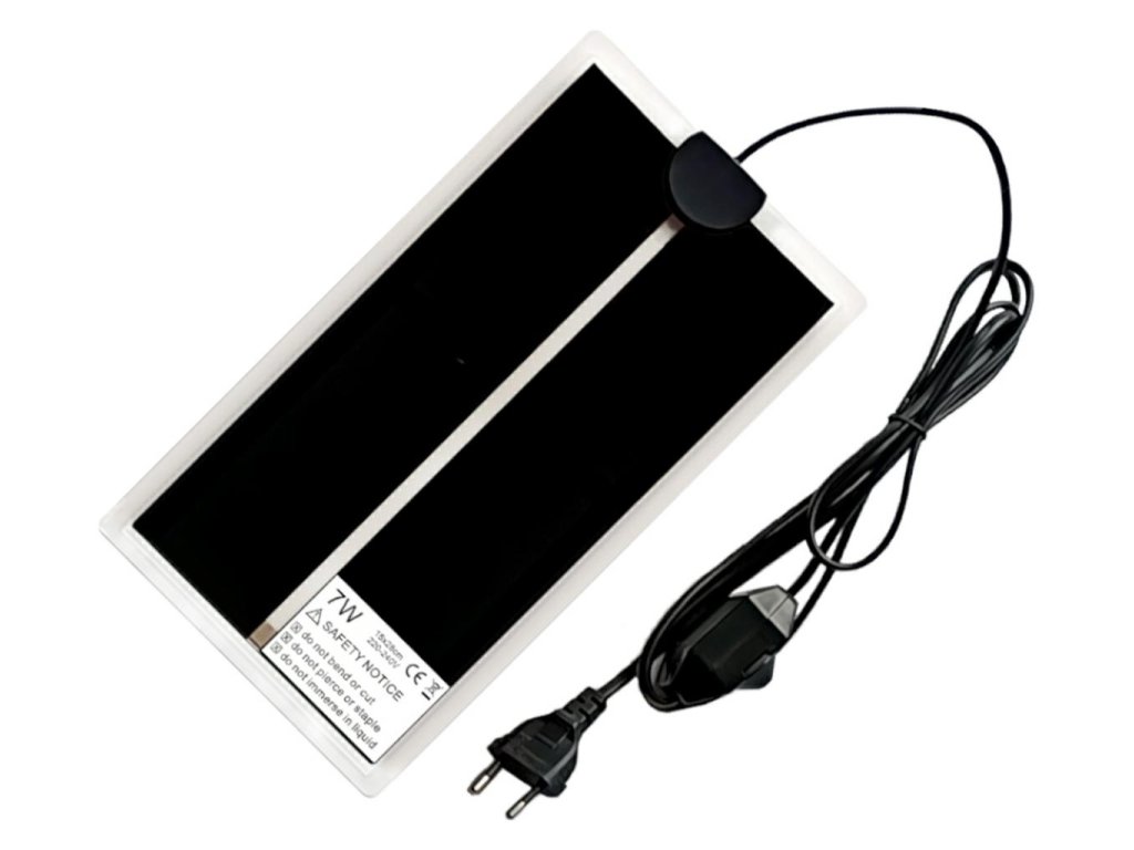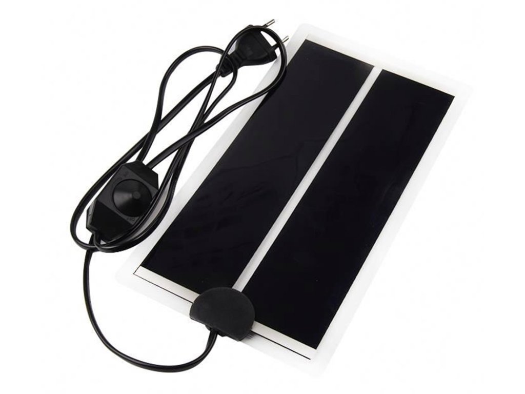 Kompaktní topná podložka určená do terárií. Její malé rozměry a vysoká účinnost zajišťují rovnoměrné vyhřívání celého terária nebo jeho části (v závislosti na velikosti). Podložka je odolná vůči vysokým teplotám. Je také vybavena jednoduchým regulátorem topného výkonu.