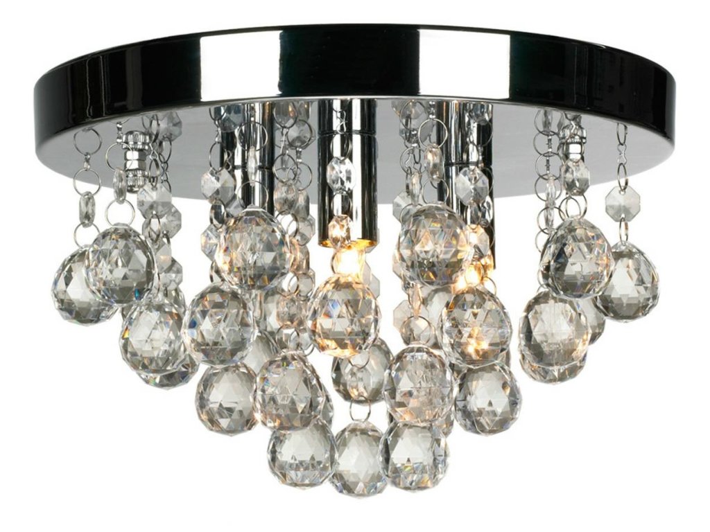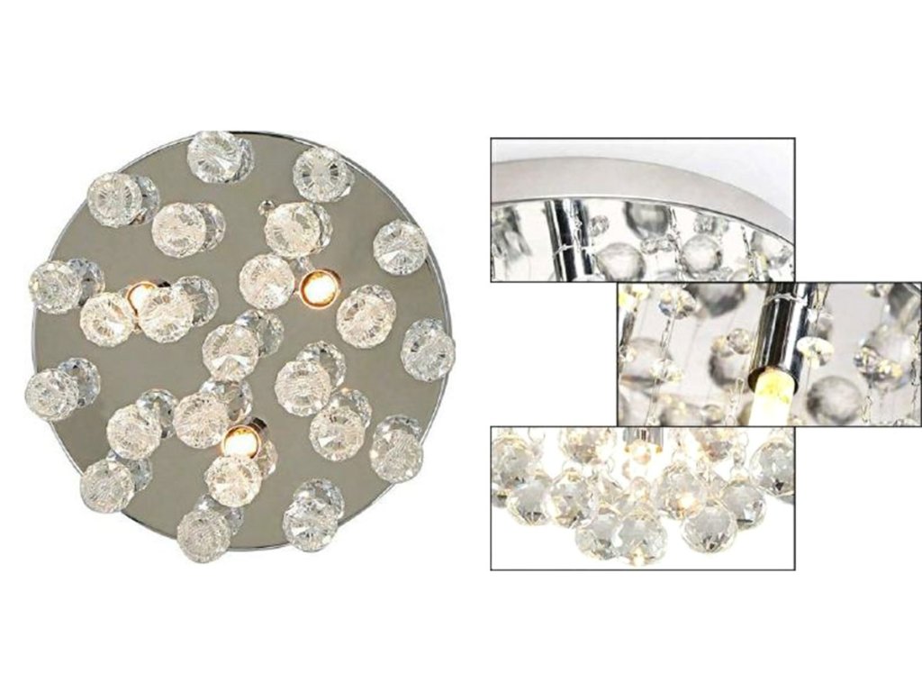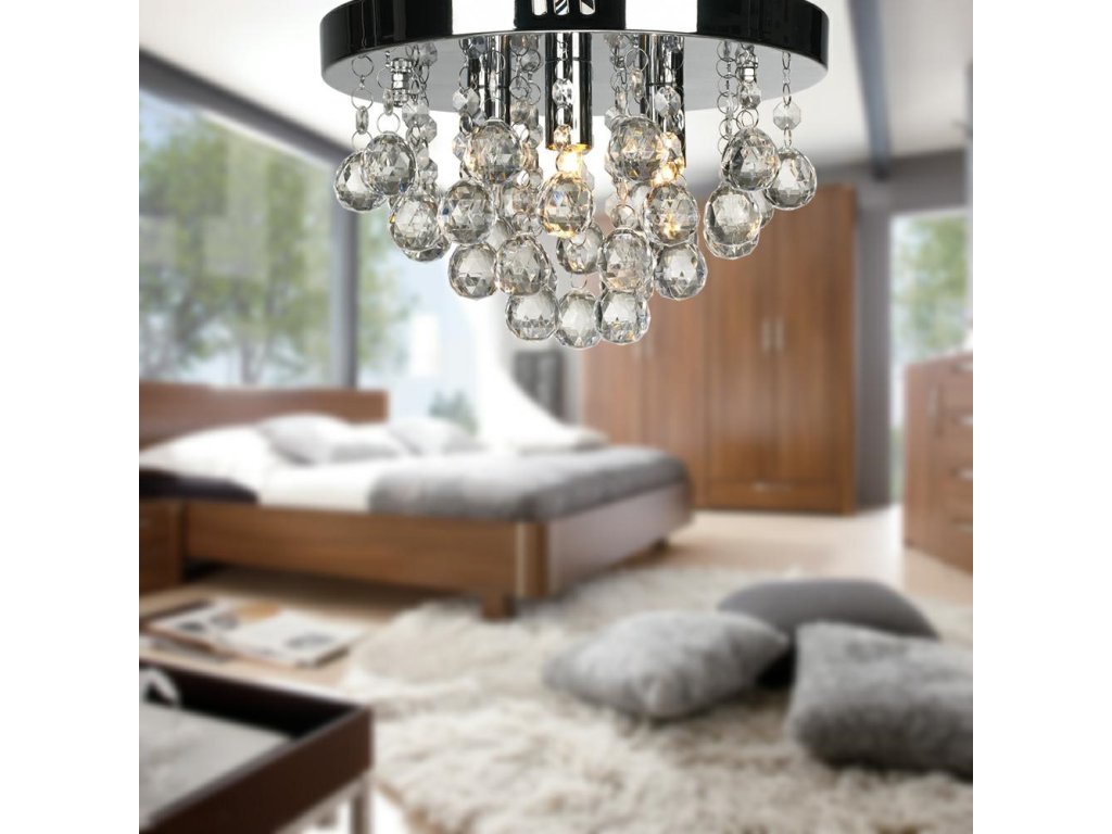 - Pochromovaný lustr s krystaly, vybavený 3 paticemi žárovky G9.