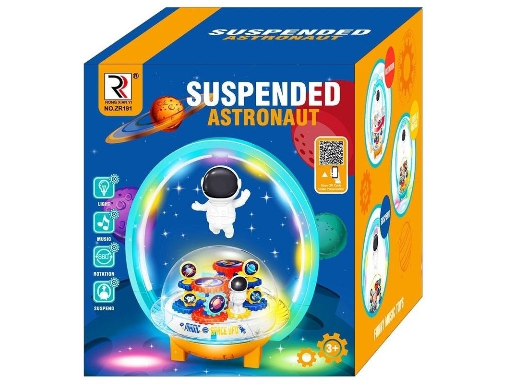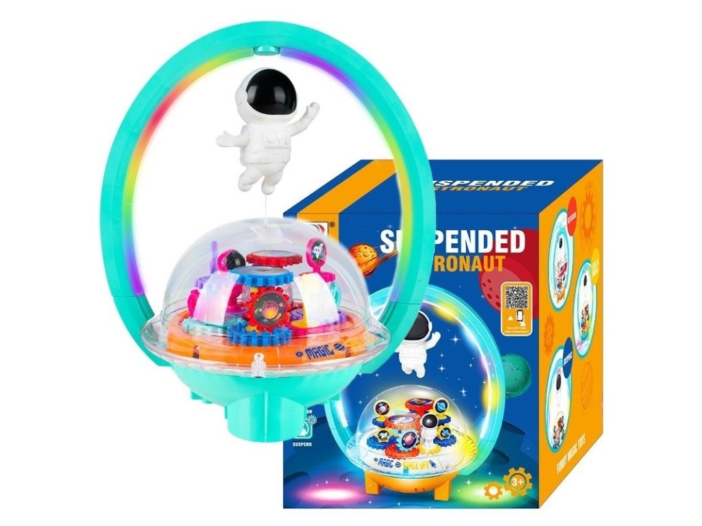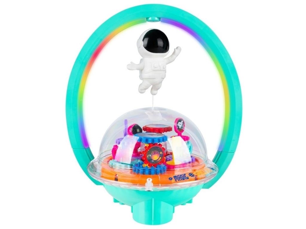 Barevné vozítko s veselou melodií, LED osvětlením a levitující figurkou astronauta. Vlastnosti produktu: - napájení na baterie: 3xAA (nejsou součástí balení) - funkce LED osvětlení - barevné podsvícení - hraje veselou melodii - pohyblivé prvky pod kopulí - figurka kosmonauta zavěšená na magnetu - před zapnutím hračky je nutné připevnit horní hrazdičku Hračka není vhodná pro děti do 3 let. Produkt zabalený v dodatečné krabici - připraven k odeslání. Rozměry kartonu: 19x16x17cmDoplňkové parametry
