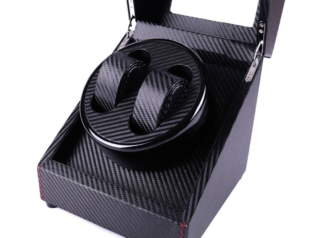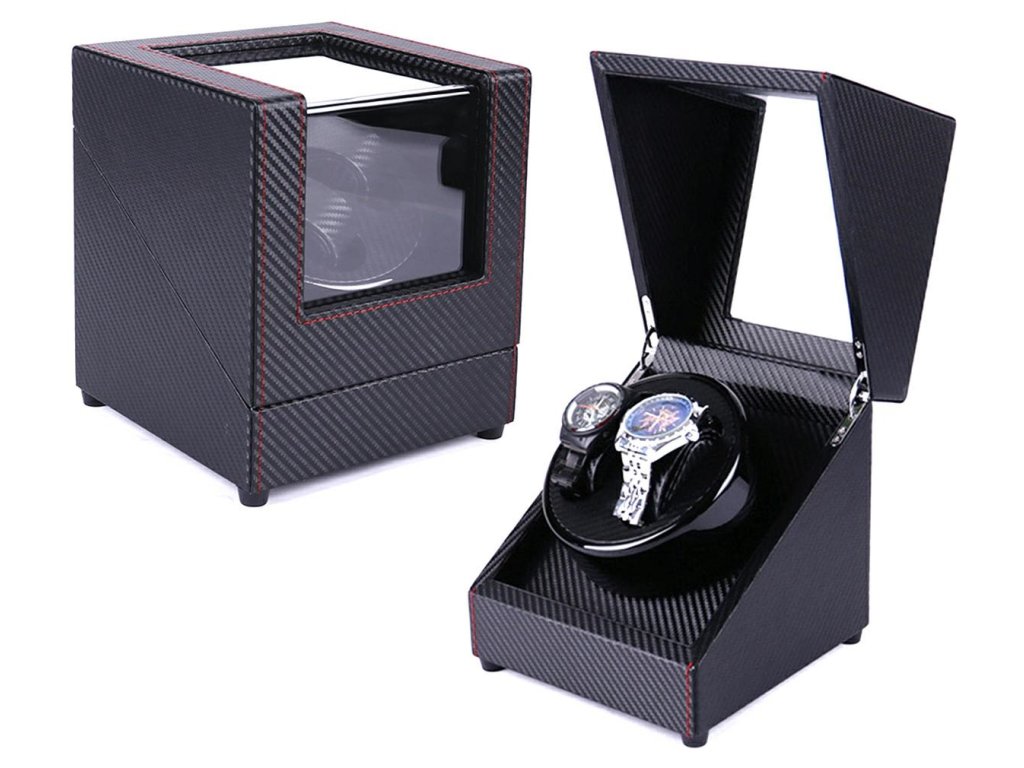Mimořádně funkční, automatický natahovač hodinek pro dvoje hodinky. Vyrobeno z elegantní černé ekokůže, prošívání z červené závit navíc zvyšují atraktivitu pouzdra. Díky černé barvě se skvěle hodí do interiérů s jakýmkoliv dekorem. Zařízení umožňuje automatické natahování hodinek s automatickým nátahem, nahrazujícím pohyby zápěstí.