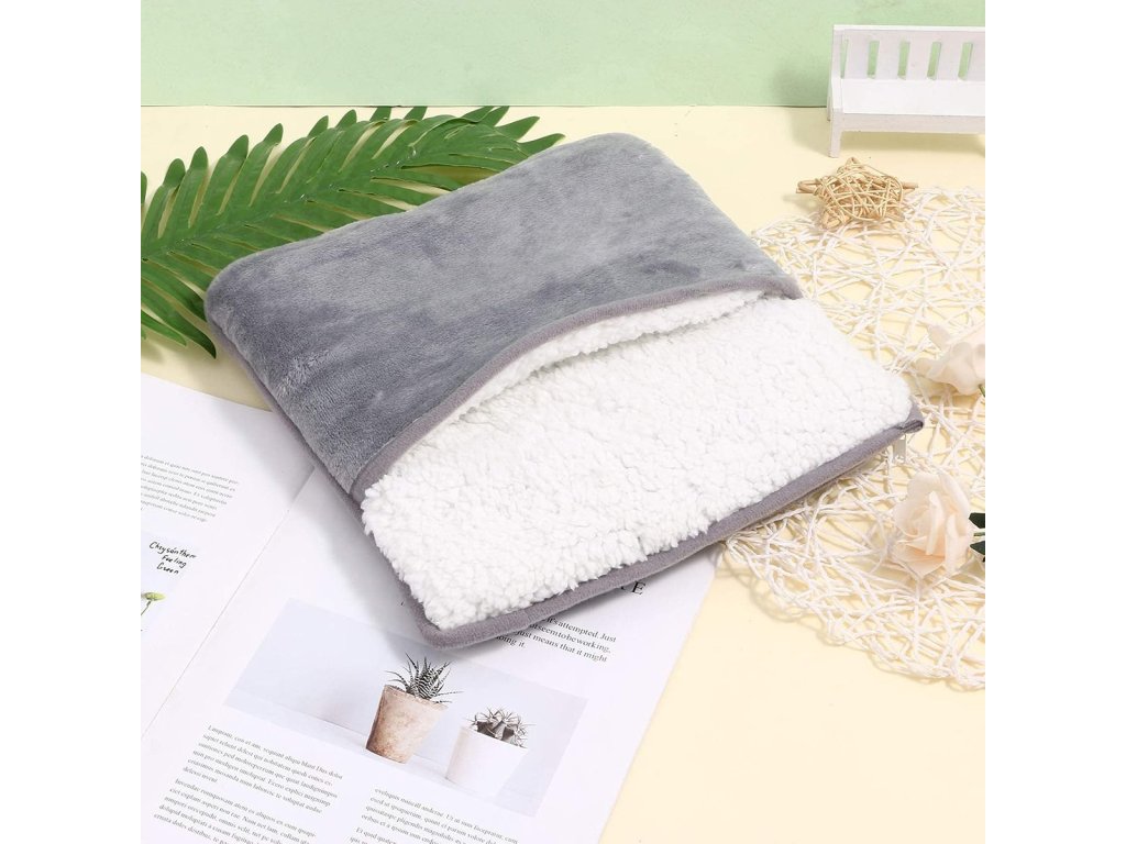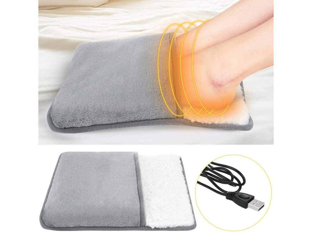 Elektrický ohřívač nohou.Podložka je vyrobena z tlustého, teplého materiálu, který pohodlně obepíná obě nohy. Kapsa je podšitá měkkou, příjemnou na dotek kožešinou. Univerzální velikost - umožňuje umístit do ní nohy bez ohledu na jejich velikost. Podložka se rychle zahřívá a stejně rychle uvolňuje teplo. Zařízení je napájeno kabelem USB – nevyžaduje připojení k síti.