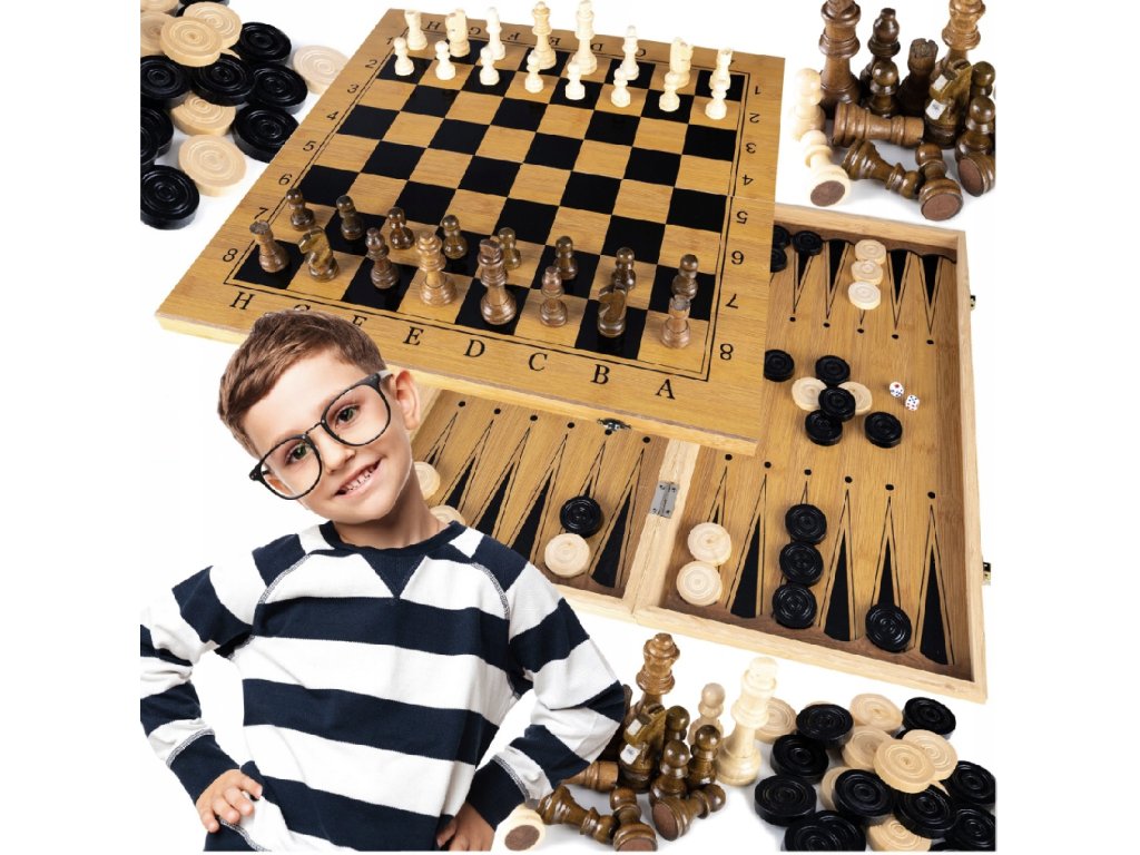 Sada pro hraní šachů, dámy a vrhcáby. Obsahuje dřevěnou šachovnici a sadu pečlivě vytvořených šachových figurek a figurek vrhcáby. Ideální do každé rodiny i na společenské akce. Vhodné pro malé i velké hráče. Tato hra nabízí unikátní a zábavný zážitek, kombinující různé herní styly a taktiky.