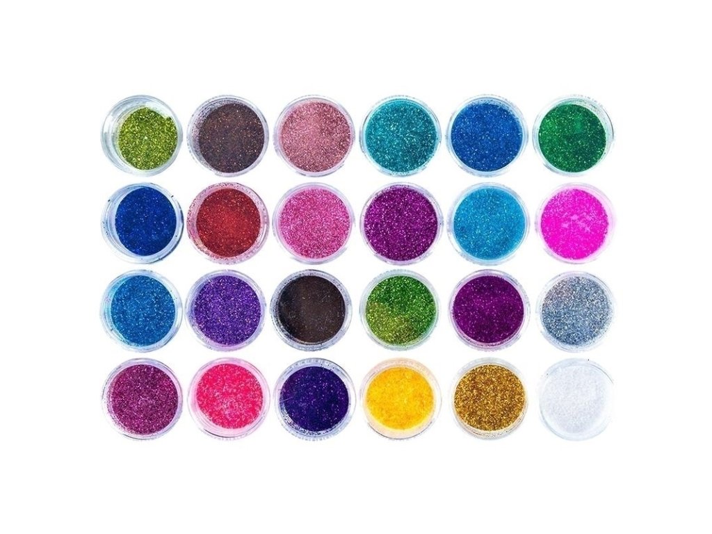 24 různých barevných třpytek