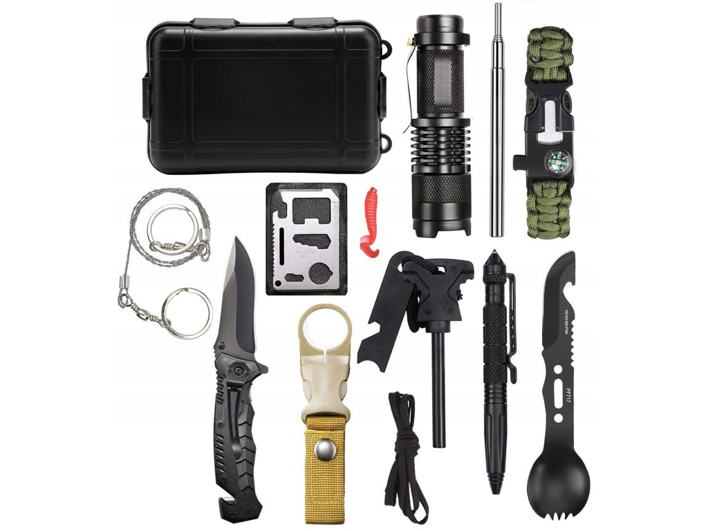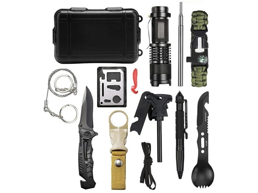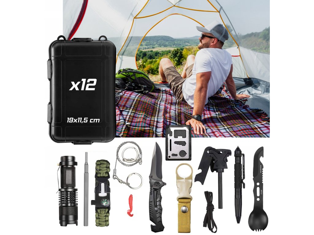 Sada pro přežití obsahuje 12 v 1 zabalena v praktickém pouzdře