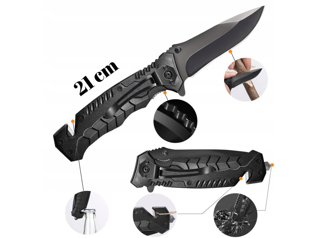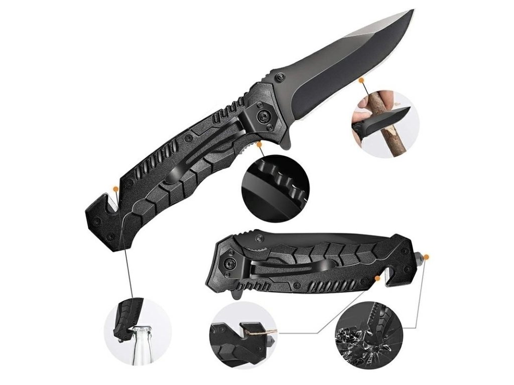 - Zavírací nůž s pilkou a rozbíječem skla (9 cm čepel)