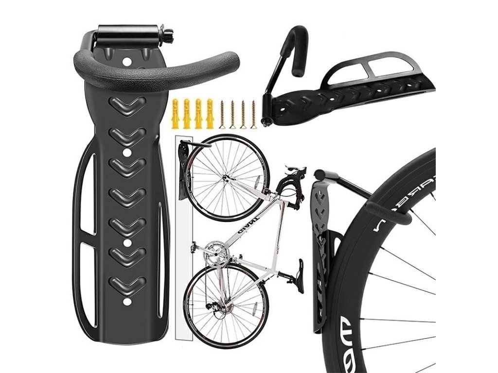 Věšák na kolo přišroubovaný ke zdi. Určeno k montáži např. na balkón, do garáže, do sklepa. Umožňuje zavěšení kola za ráfek předního kola. Vlastnosti produktu: - umožňuje úsporu místa - umožňuje rychlé upevnění kola na držák - maximální zatížení věšáku je 30 kg