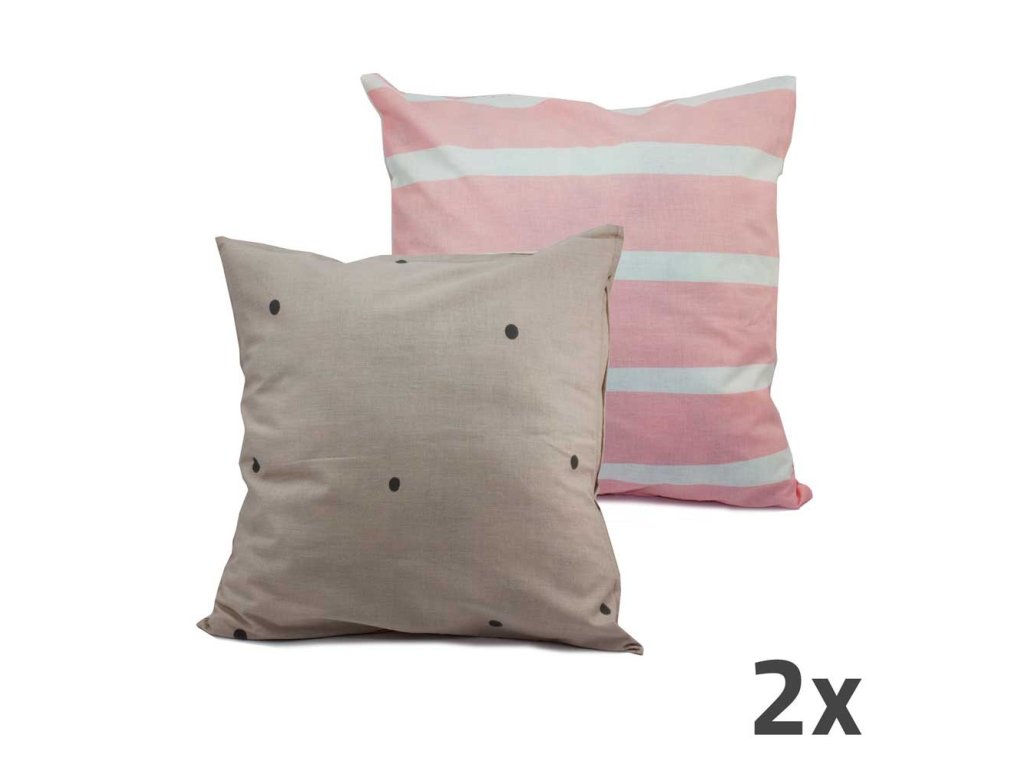 HOME ELEMENTS Povlak na polštář 40x40 cm, sada 2 ks, dva designy, šedý puntík+růžový pruh