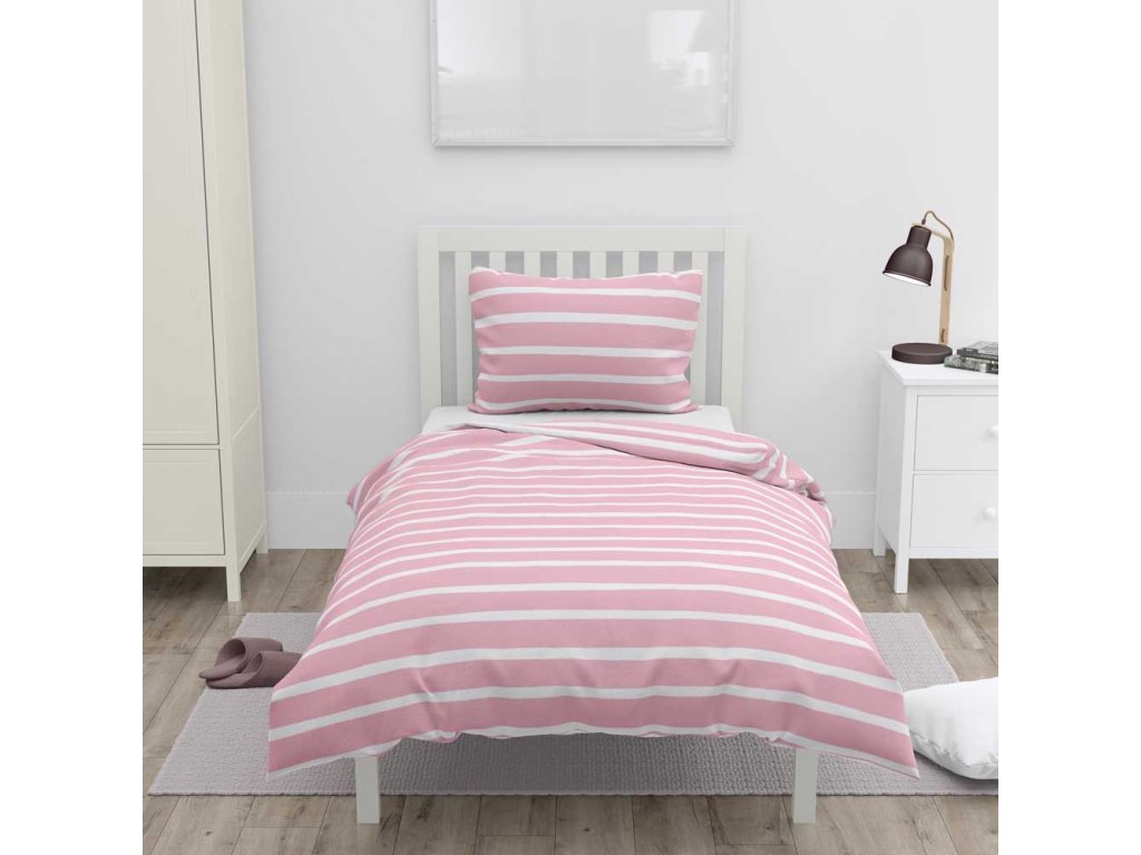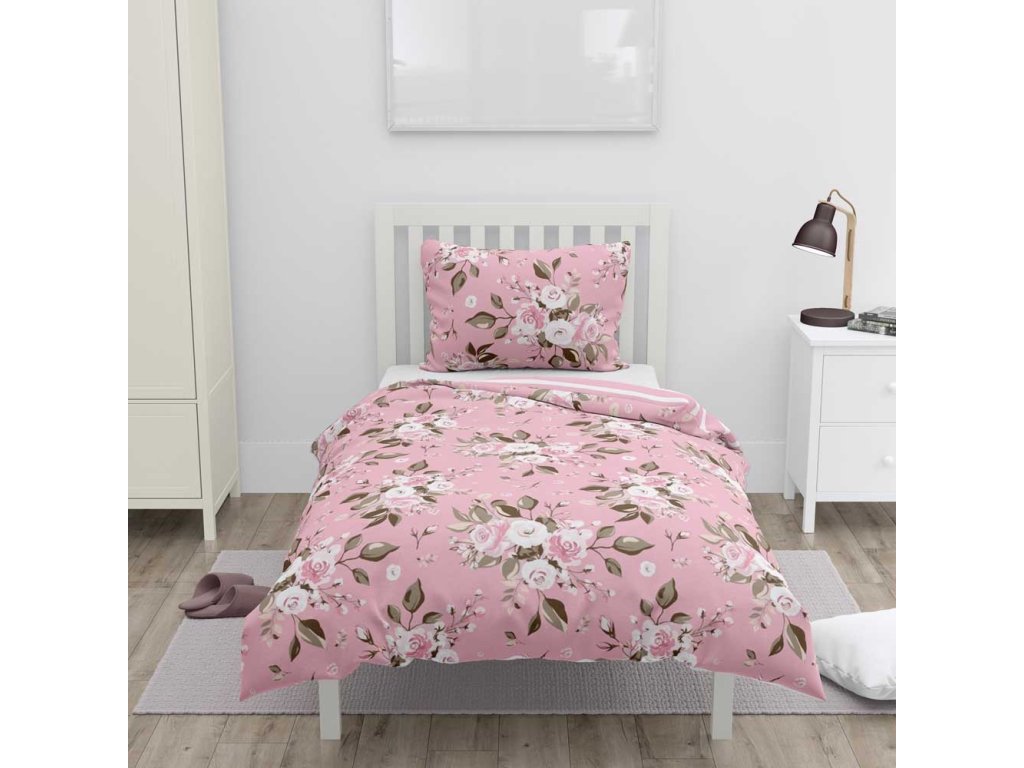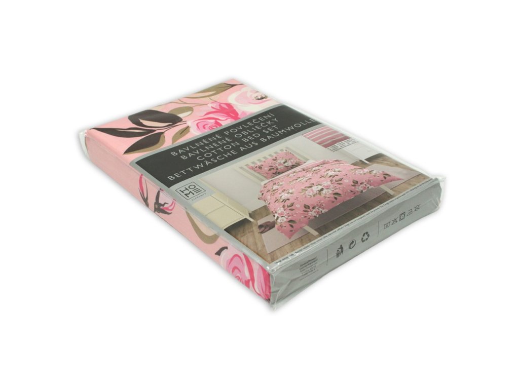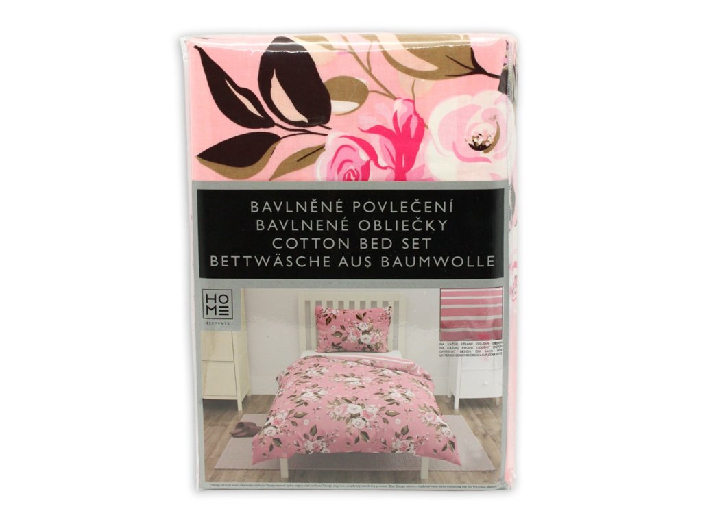 HOME ELEMENTS Povlečení 140x200 + 70x90 cm, dva designy, růžová růže + proužek