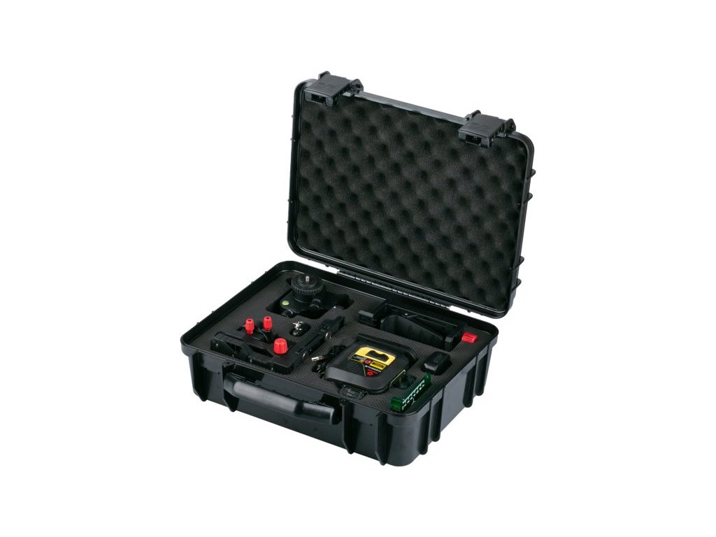 Kompletní profesionální sada: Laser obdržíte v kufru s bohatým příslušenstvím – od dálkového ovládání pro pohodlnou práci až po multifunkční držák a otočný ministativ. Jste plně vybaveni hned po rozbalení.