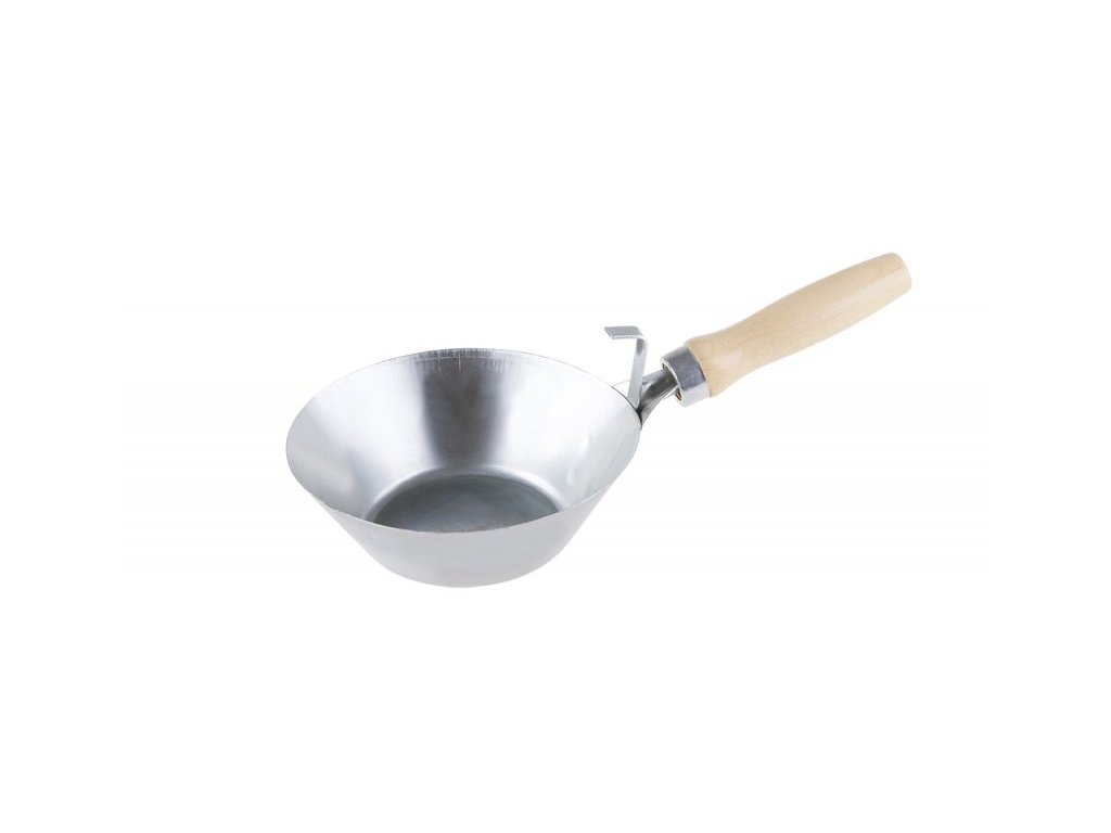 Zednická naběračka pozinkovaná 180 mm s dřevěnou ručkou a s háčkem na pověšení. Je zednické nářadí používané pro přemisťování stavebních hmot: malta, beton atd.Doplňkové parametry