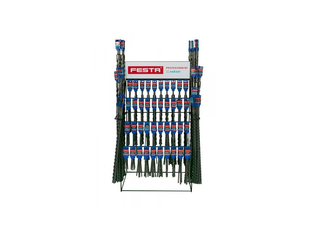 praktický stojan na různé druhy vrtáků a sekáčů SDS+ a MAX, které se na stojan zavěšují 40 pozic - háků, boční držáky na dlouhé vrtáky kompaktní rozměry 62,5 x 89 x 44 cm možné umístění na pult, samostatně stojící nebo zavěšení na stojanDoplňkové parametry
