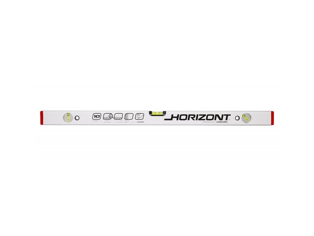Horizont vodováha se třemi libelami, přesnost 0,5mm/m = 0,0285°, eloxovaný otěruvzdorný povrch, tloušťka stěny ALU profilu 1,5mm, kapalina v libelách je UV stabilizovaná a fluorescenční, horizontální optická libela - usnadňuje a zvyšuje přesnost měření, vodováha je odolná proti provozním nárazům, 10 let záruka na libely, KAŽDÝ KUS ELEKTRONICKY TESTOVÁN.Doplňkové parametry