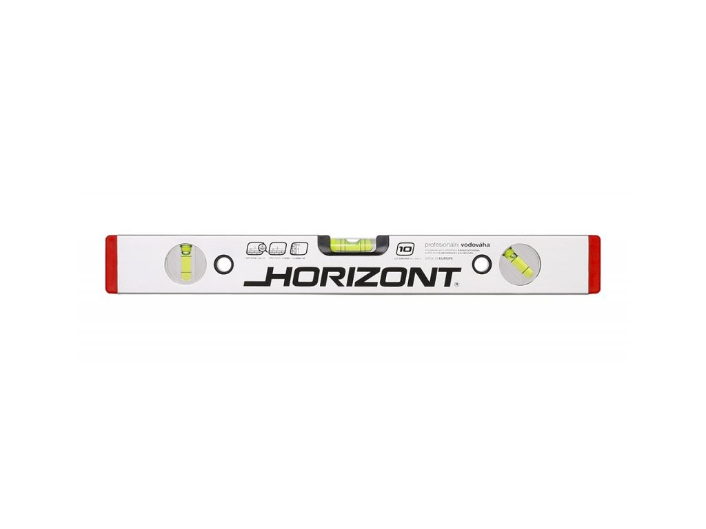Horizont vodováha se třemi libelami, přesnost 0,5mm/m = 0,0285°, eloxovaný otěruvzdorný povrch, tloušťka stěny ALU profilu 1,5mm, kapalina v libelách je UV stabilizovaná a fluorescenční, horizontální optická libela - usnadňuje a zvyšuje přesnost měření, vodováha je odolná proti provozním nárazům, 10 let záruka na libely, KAŽDÝ KUS ELEKTRONICKY TESTOVÁN.Doplňkové parametry