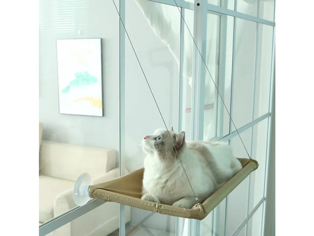 Stabilní kočičí pelíšek ve tvaru houpací sítě. Navrženo pro montáž na okenní tabuli pomocí speciálních přísavek. Houpací síť je vyrobena z pevných materiálů a vybavena přídavným rámem, který stabilizuje celou konstrukci. Upevňovací šňůry v kombinaci s přísavkami zaručují oporu i té nejtěžší kočce :) Pelíšek jistě osloví i ty nejnáročnější kocoury.
